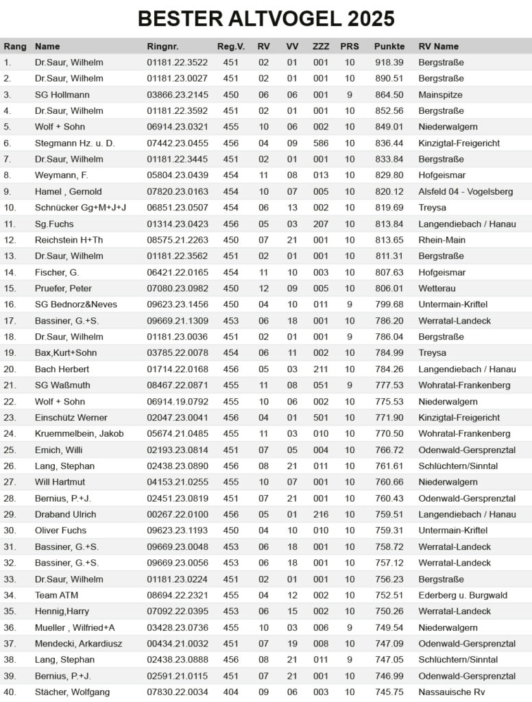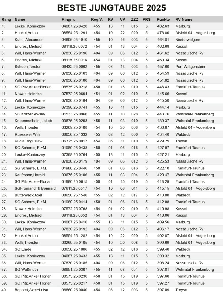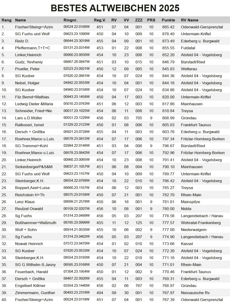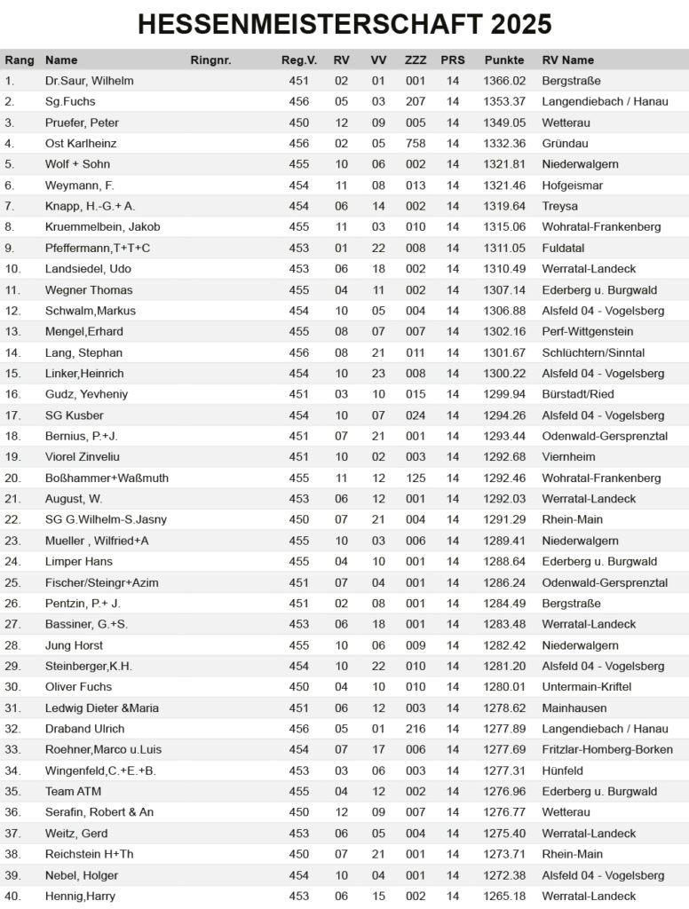 Hier finden Sie die Ergebnisse der Meisterschaften: